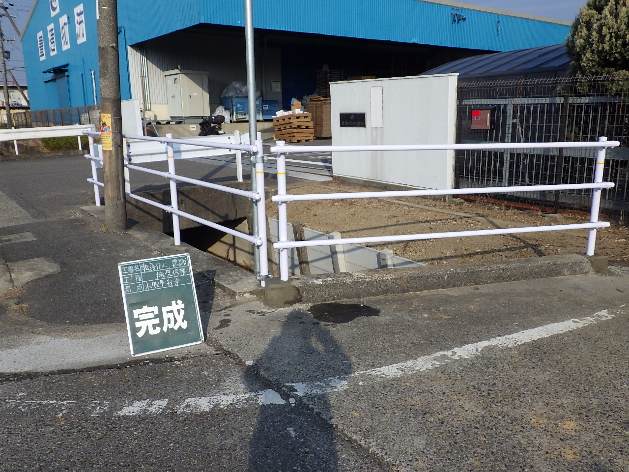 小牧市舟津地内にて標識・転落防止柵・擁壁の事故修繕工事を行いました。